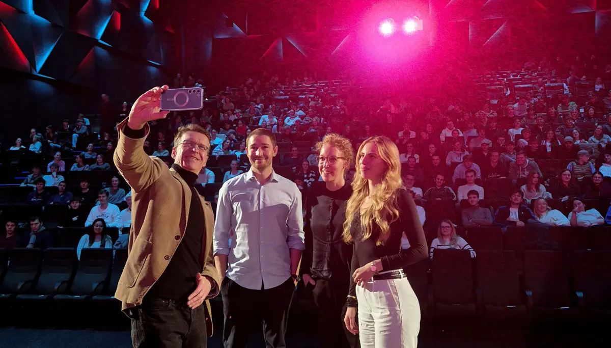 After the screening, we had a lively panel discussion together with Dr. Annegret Saxe (Board Member, Sparkasse Münsterland Ost), Lara Zoe Minor (Student & Social Media Manager), and myself.